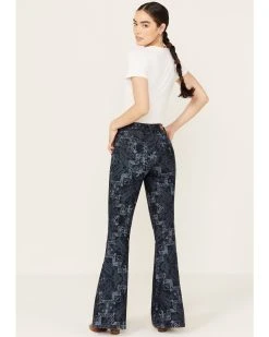 Shyanne Women’s Dark Wash High Rise Printed Stretch Flare Jeans