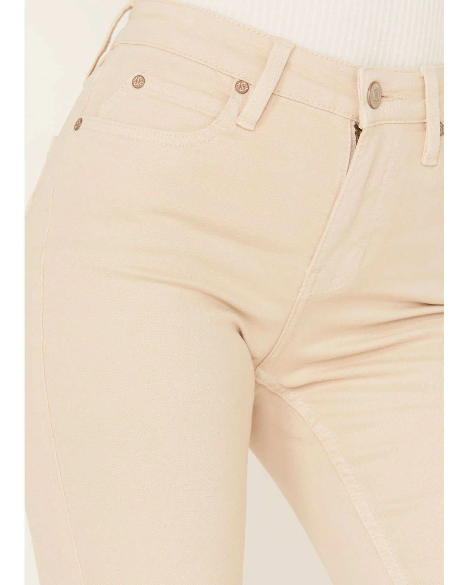 - Five-pocket styling with seamed detailing on back