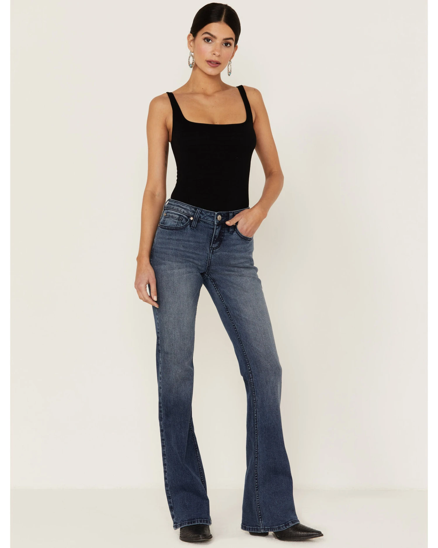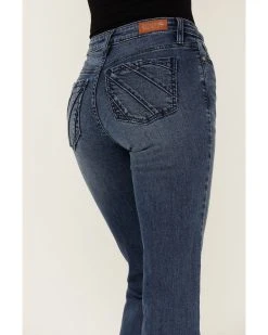 Shyanne Women’s Embroidered Dark Wash High Rise Stretch Flare Jeans