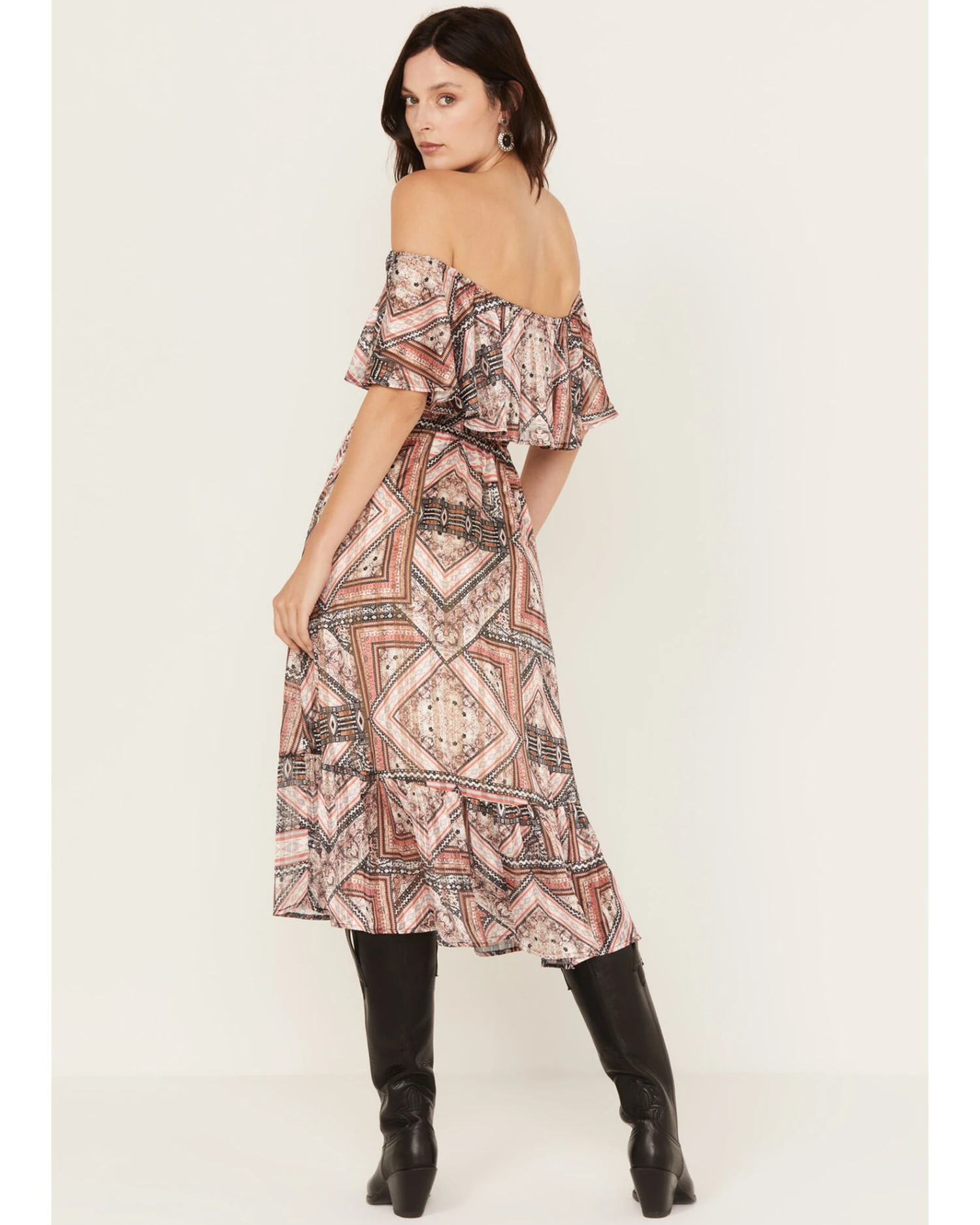 - Off the shoulder styling with ruffle design