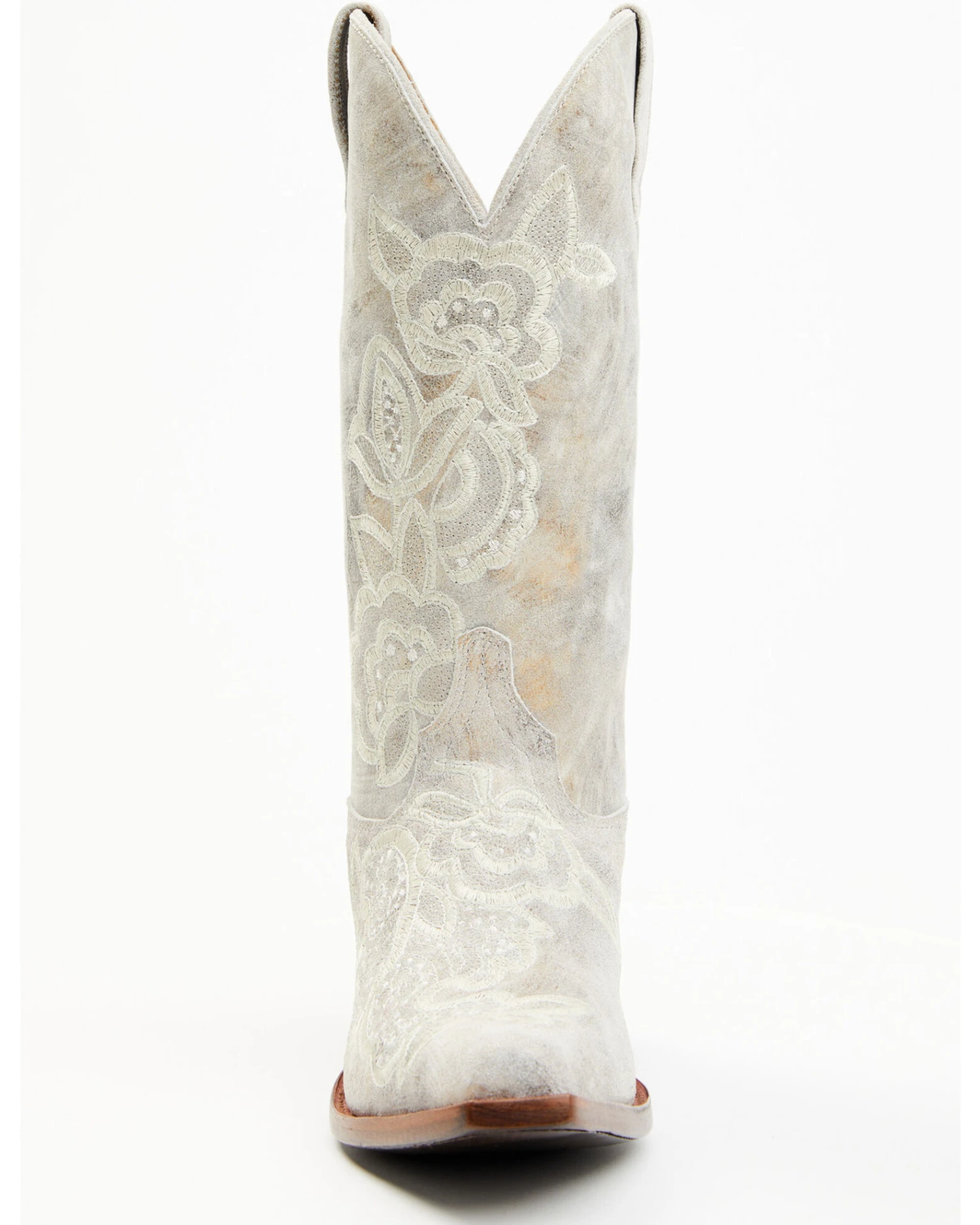 - Floral embroidery design throughout